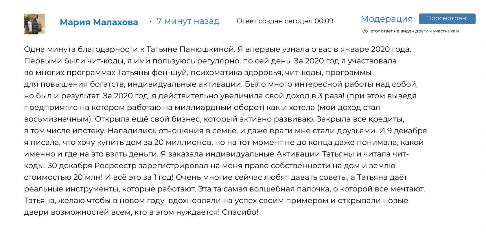 После выхода на пенсию получила два высших образования в сфере метафизики и сейчас получает третье
